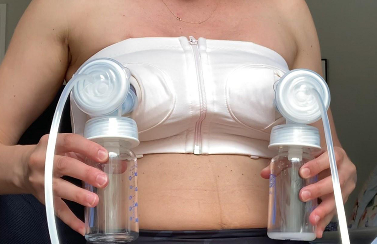 For pumping bras that zip up the middle in front, zip it only 2-3 inches at first so you still have room to suction each flange onto your breasts. Then zip it the rest of the way after both sides are attached.